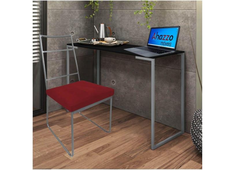 Kit Escritório Stark Cadeira e Mesa Industrial Ferro Prata Tampo MDF Imbuia Suede Vermelho - Ahz Móveis