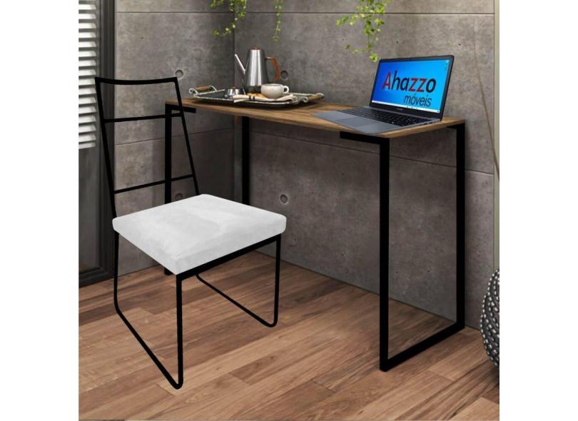 Kit Escritório Stark Cadeira e Mesa Industrial Ferro Preto Tampo MDF Rústico Suede Branco - Ahz Móveis