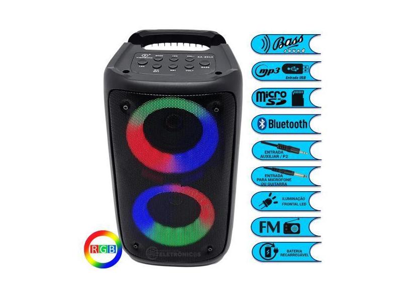 Caixa de Som Potência 15W Multi-Funções FM Bluetooth Com Luzes RGB Alt