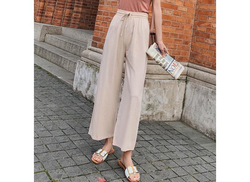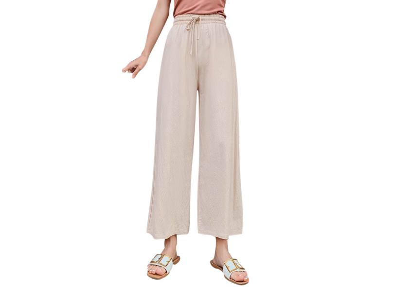 Calça comprida feminina mistura de linho de algodão casual calça larga praia larga