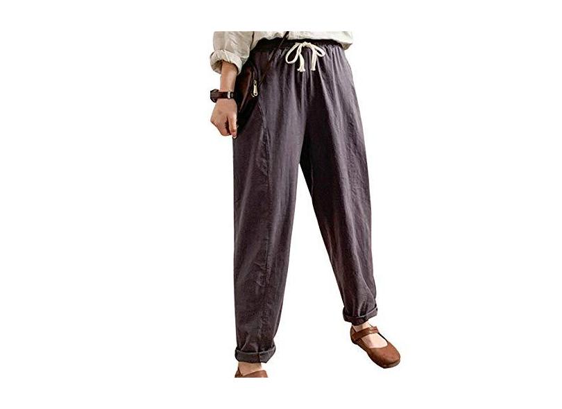 Calça de linho de algodão para mulheres soltas, calça harém casual cropped