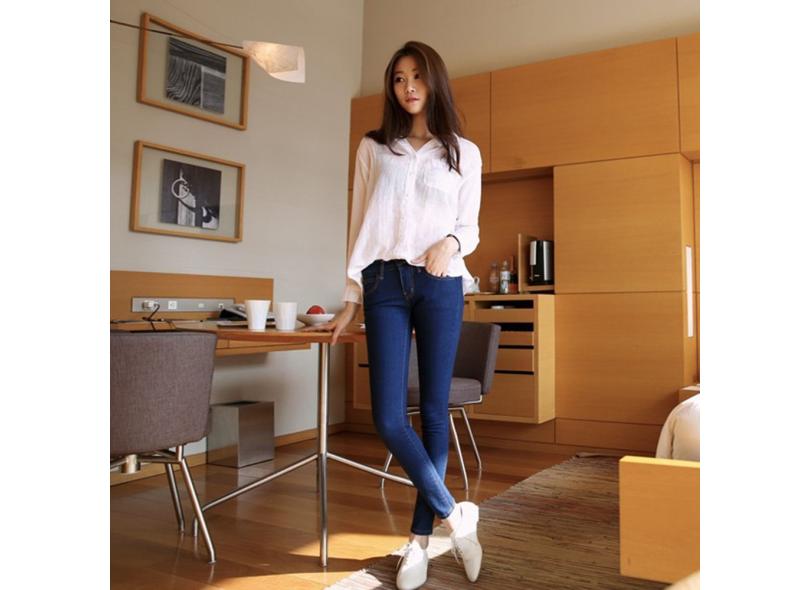 Calça Jeans Skinny Mid-rise Bunda De Levantamento De Calças Lápis De Comprimento Até O Tornozel