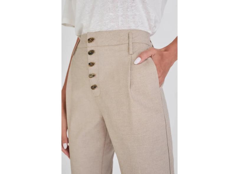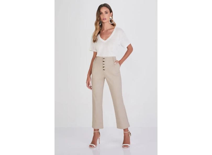 Calça Pin-Up Cropped Straight Lado Avesso Bege