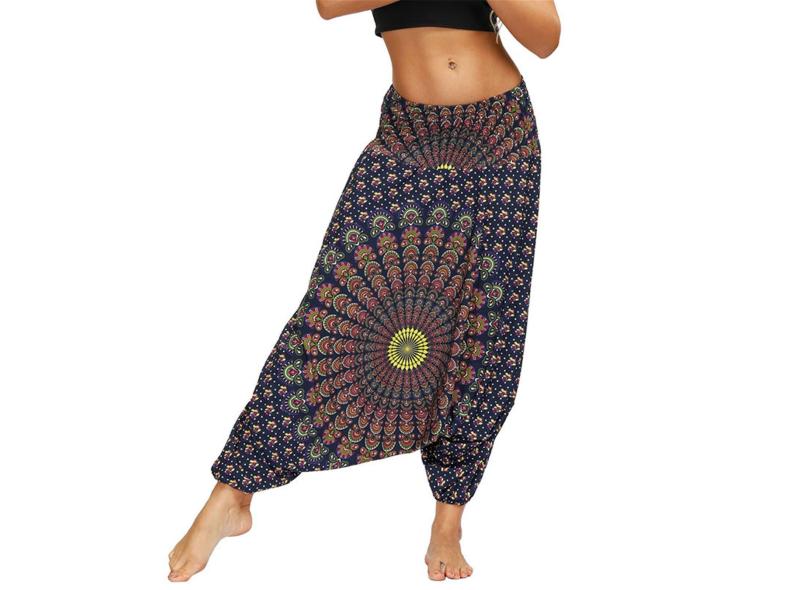 XIOASI Calça feminina para ioga, calça harém Boho cigana para ioga, dança, hippie, folgada, palazzo