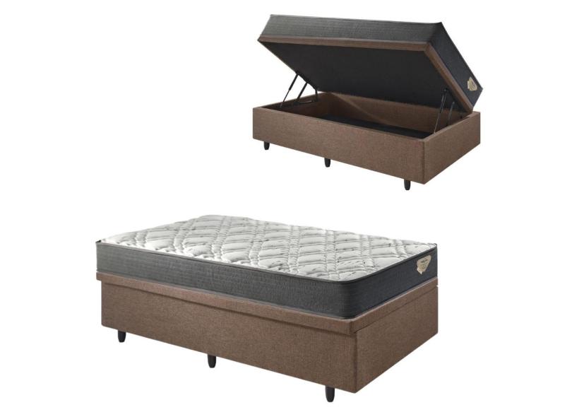 Base Box Baú 88x188 Linho Marrom com Colchão Adapto Molas Ensacadas