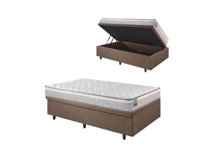 Base Box Baú 88x188 Linho Marrom com Colchão Hanover Inducol