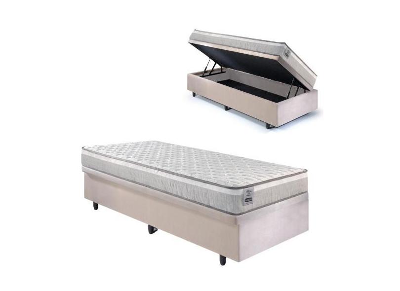 Base Box Baú 88x188 Suede Bege com Colchão Hanover Inducol
