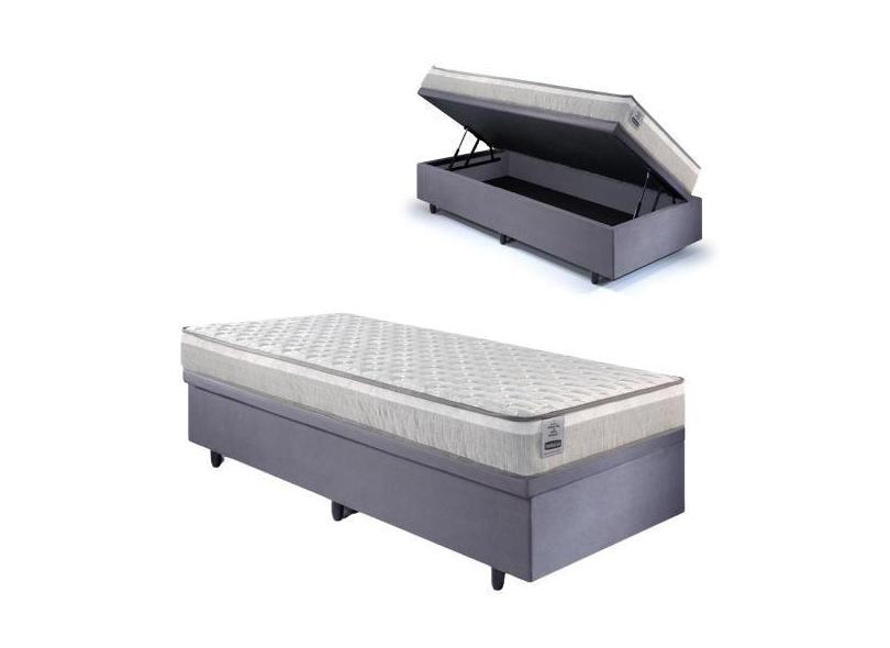 Base Box Baú 88x188 Suede Cinza com Colchão Hanover Inducol