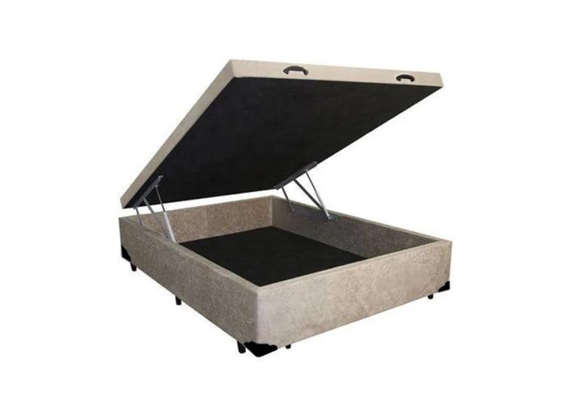 Base Box Baú Casal Sintético Bege - 39x138x188