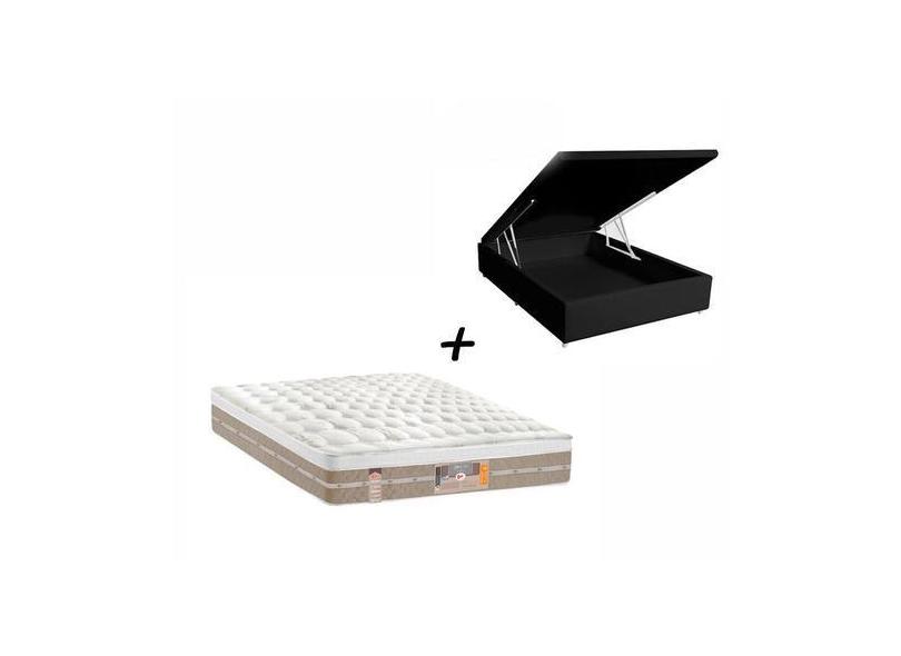 Base Box Baú Casal Sintético Preto + Colchão Castor Casal Molas Pocket