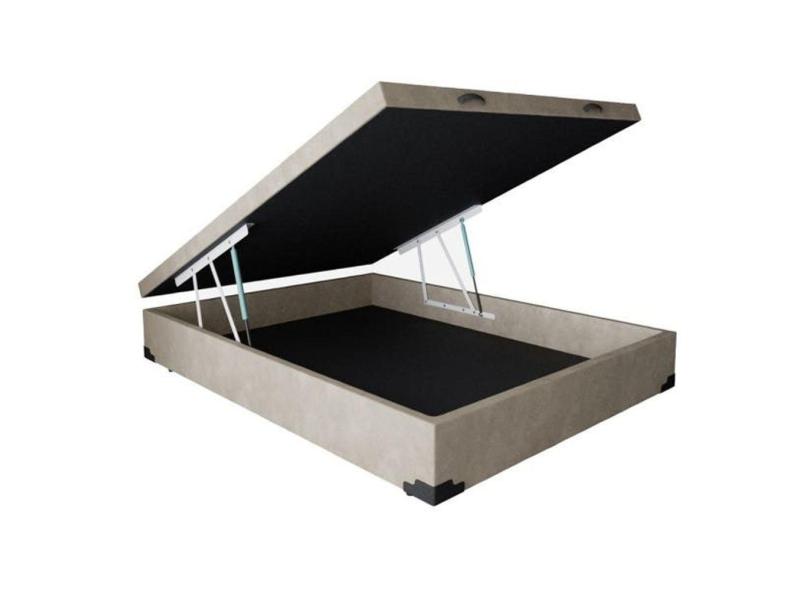 Base Box Baú Casal Suede Bege 39x138x188cm