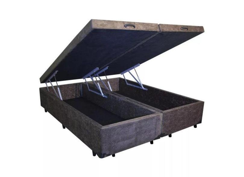 Base Box Baú Queen Bipartido Suede Marrom 39x158x198