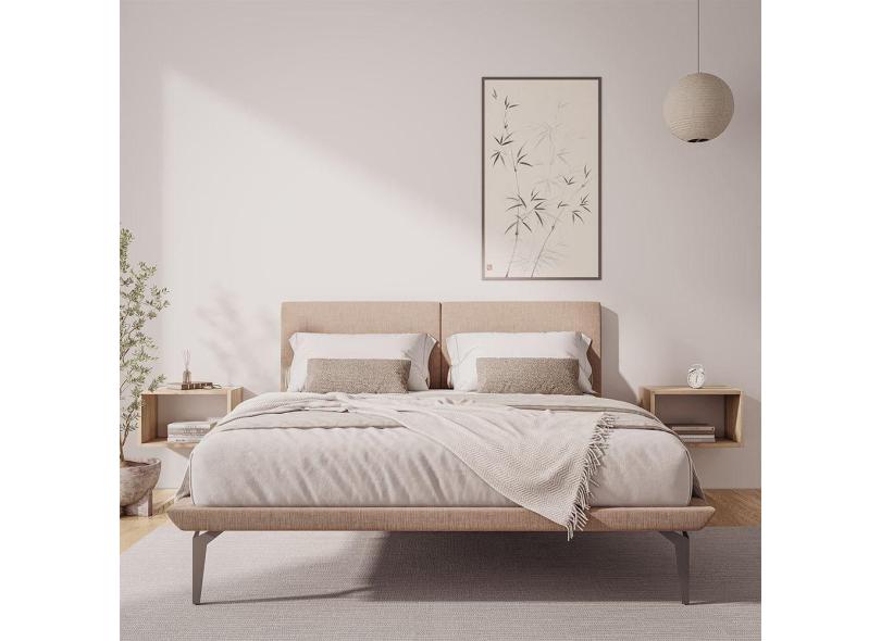 Base Box Cama Japonesa Toquio Queen Com Cabeceira Almofada Linho Bege - Cor: Bege