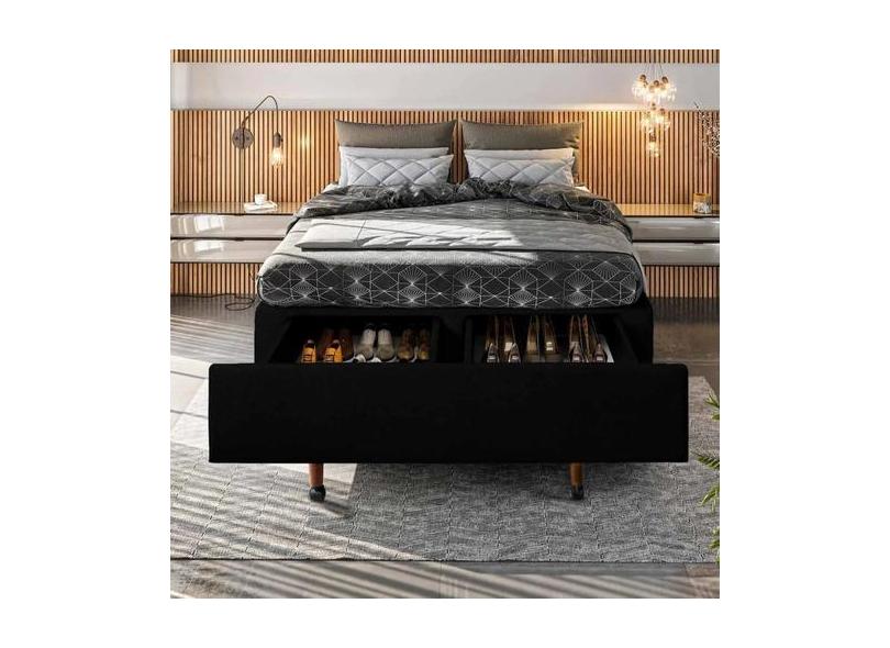 Base Box King Com Sapateira 193X203x30cm Móveis Digital Suede Preto