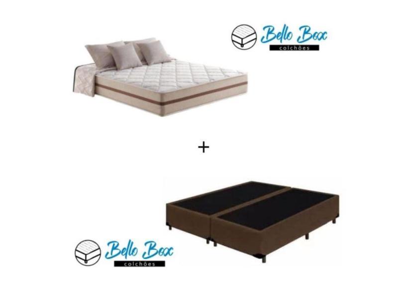 Base Box King Tecido Sintético Marrom com Colchão Pillow Angel - Bello Box - Molas Ensacadas 62x193x203