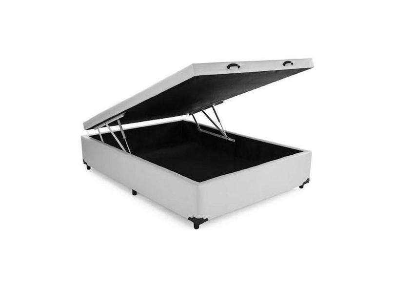 Base Cama Box Com Bau Casal Material Sintético Branco 43X138x188 - Son