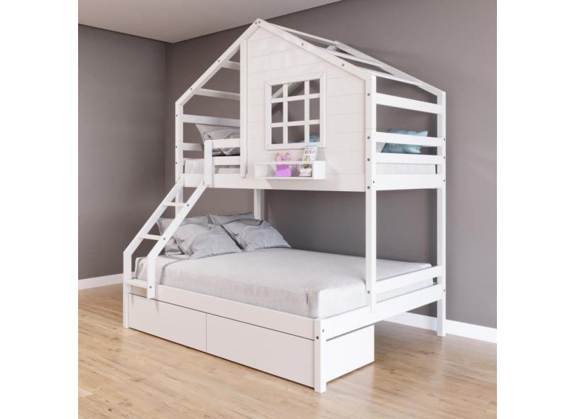 O menor preço encontrado no Brasil para Beliche Casinha com Janela Casal/Solteiro com 02 Gavetas Madeira Maciça Branco Housin atualmente é R$ 2.627,33.
