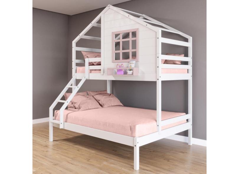 O menor preço encontrado no Brasil para Beliche Casinha Com Janela Casal/solteiro Madeira Maciça Branco/ Rosa Housin atualmente é R$ 1.942,72.