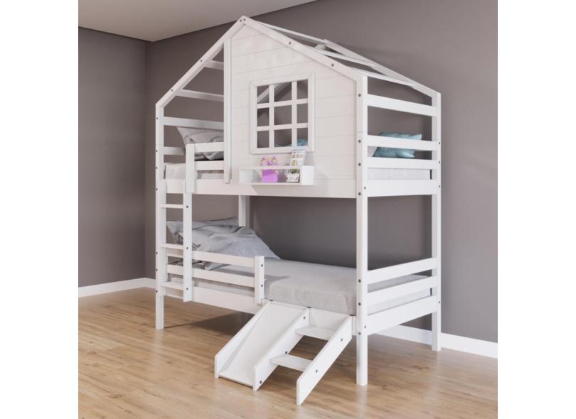 O menor preço encontrado no Brasil para Beliche Casinha Com Janela Com Escada/escorregador E Grade De Proteção Madeira Maciça Branco Housin atualmente é R$ 2.241,41.
