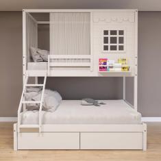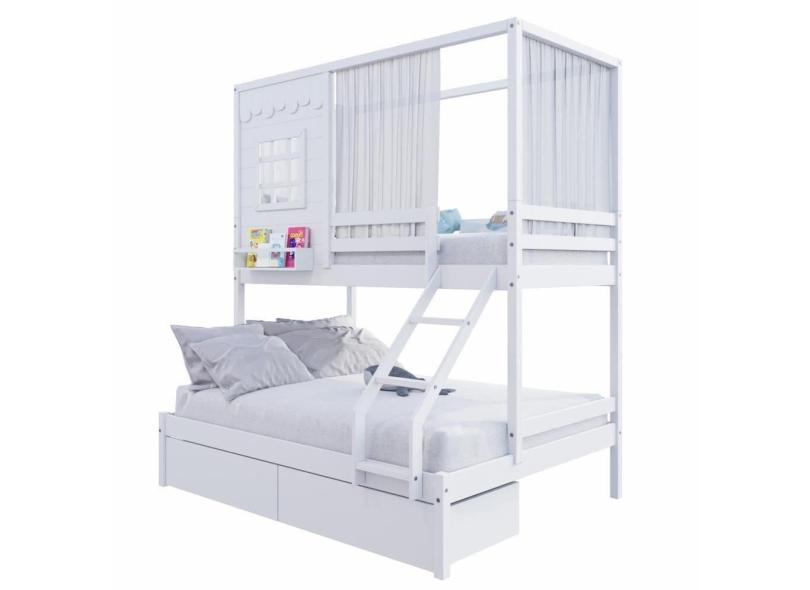 O menor preço encontrado no Brasil para Beliche Casinha Reta Casal- Solteiro Com 02 Gavetas E Cortina Madeira Maciça Branco Housin atualmente é R$ 2.907,98.