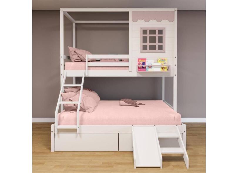 O menor preço encontrado no Brasil para Beliche Casinha Reta Casal/ Solteiro Com 02 Gavetas E Escorregador Madeira Maciça Branco/ Rosa Housin atualmente é R$ 3.022,16.