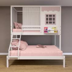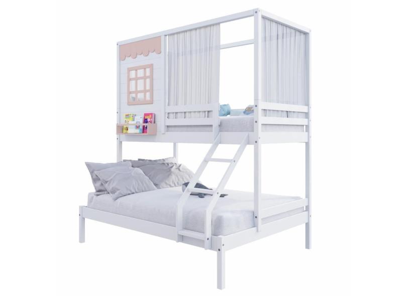 O menor preço encontrado no Brasil para Beliche Casinha Reta Casal- Solteiro Com Cortina Madeira Maciça Branco- Rosa Housin atualmente é R$ 2.417,85.