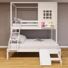 O menor preço encontrado no Brasil para Beliche Casinha Reta Casal/ Solteiro Com Escorregador Madeira Maciça Branco Housin atualmente é R$ 2.452,46.