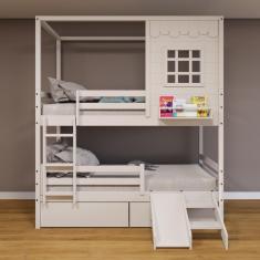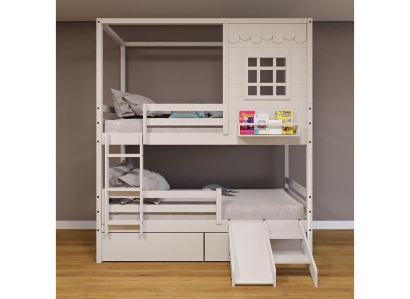 O menor preço encontrado no Brasil para Beliche Casinha Reta com 02 Gavetas Escorregador e Grade Removível Madeira Maciça Branco Housin atualmente é R$ 2.897,04.