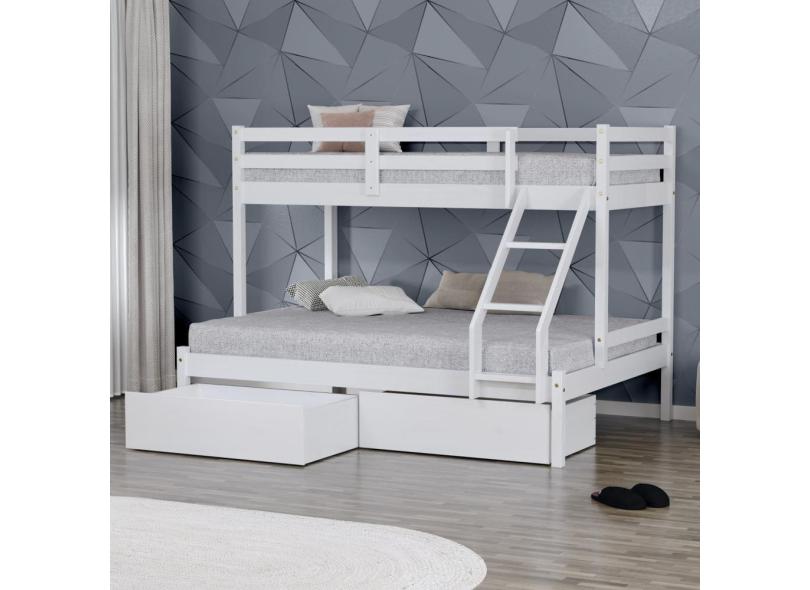 Beliche com Cama Casal Dreams com 02 Gavetas Madeira Maciça Branco Housin