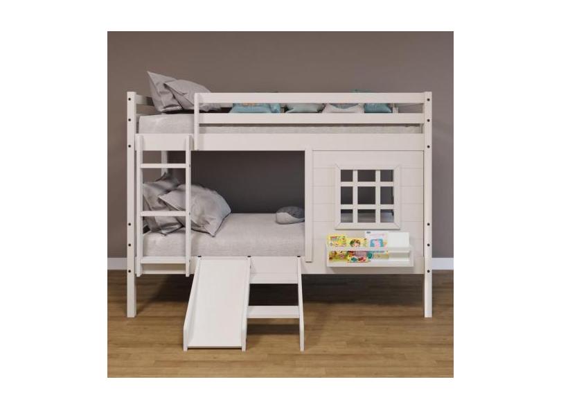 Beliche Infantil com Janela e Escorregador Madeira Maciça Branco Housi