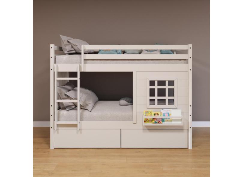 O menor preço encontrado no Brasil para Beliche Infantil Com Janela Gavetas E Cortina Madeira Maciça Branco Housin atualmente é R$ 2.123,46.