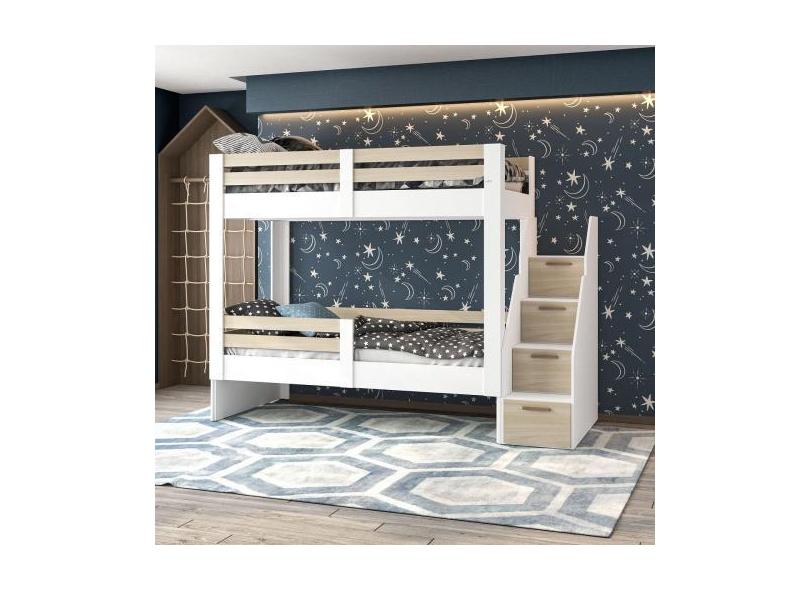 Beliche Infantil Jade com Escada Mobikasa, Branco/Legno Salinas