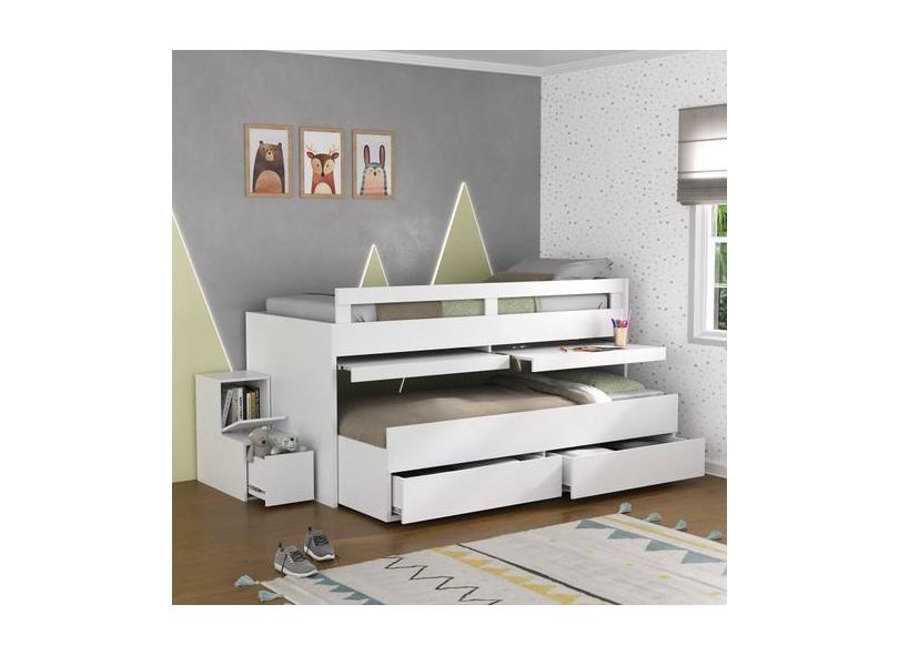 Beliche Infantil /Juvenil Com 2 Gavetas 2 Escrivaninhas Branco - Fosca