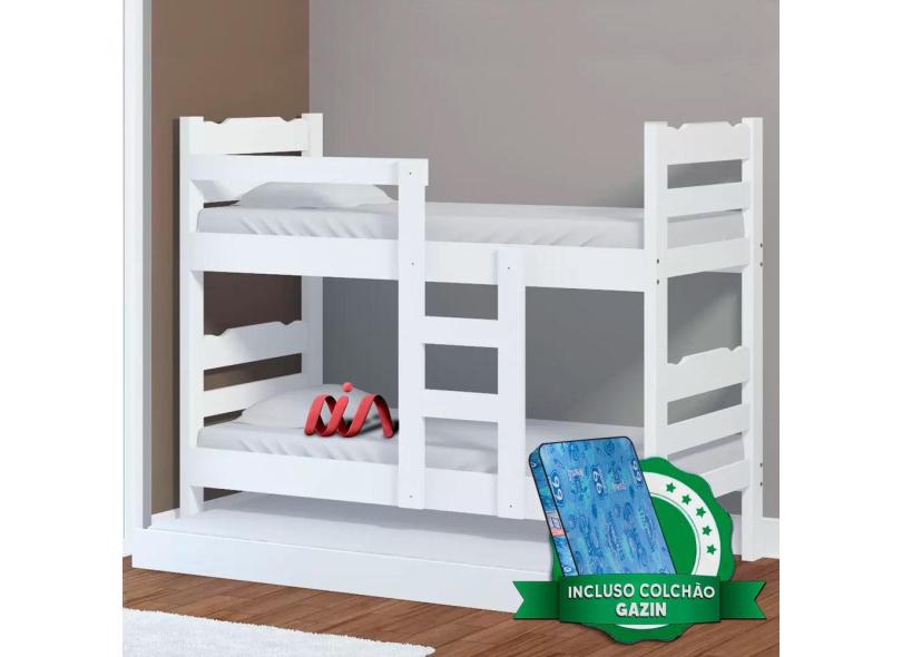 Beliche Madeira Maciça Com Cama Auxiliar Solteiro Robusta Nemargi Branco Com 3 Colchões Gazin