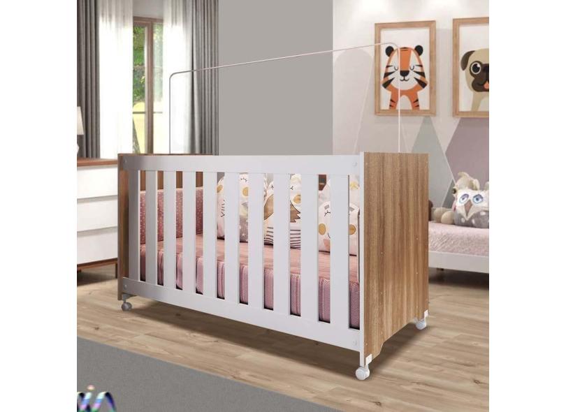 Berço Mini Cama Com Rodinhas Aconchego 64cm X 133cm Nogal Manchester Com Branco Lysander Jm Móveis