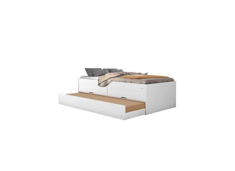 Bicama Beliche Solteiro Bari Branco Gavetas E Cama Auxiliar - B&A Bent
