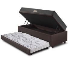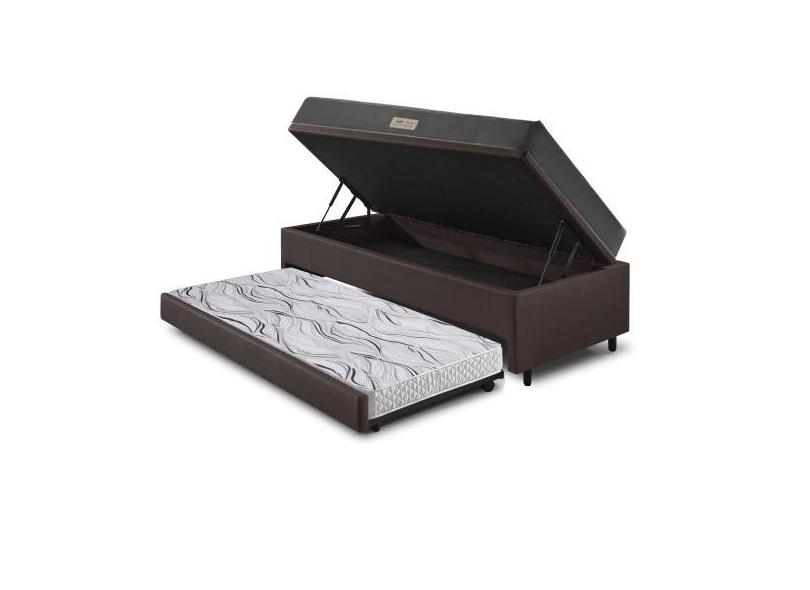 Bicama Box Baú 88X188x42 Revestimento Sintético Marrom Com Colchão De