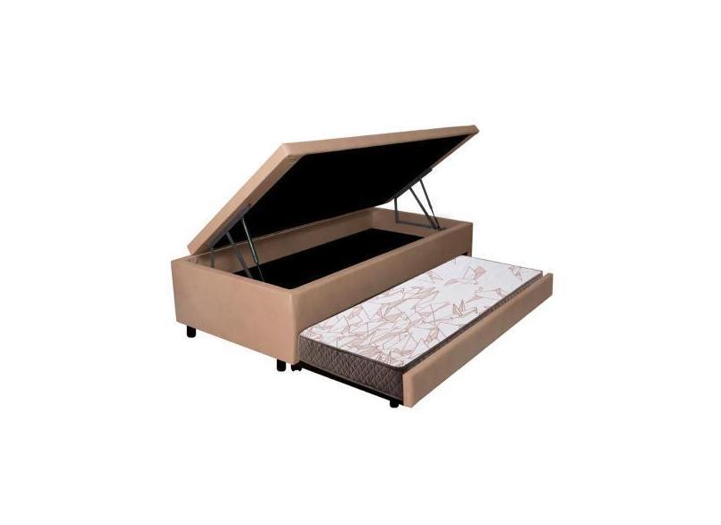 Bicama Box Baú 96X203x42 Revestimento Sintético Bege Com Colchão Adapt