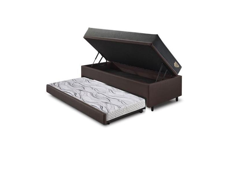 Bicama Box Baú 96x203x42 Revestimento Sintético Marrom com Colchão Ada