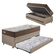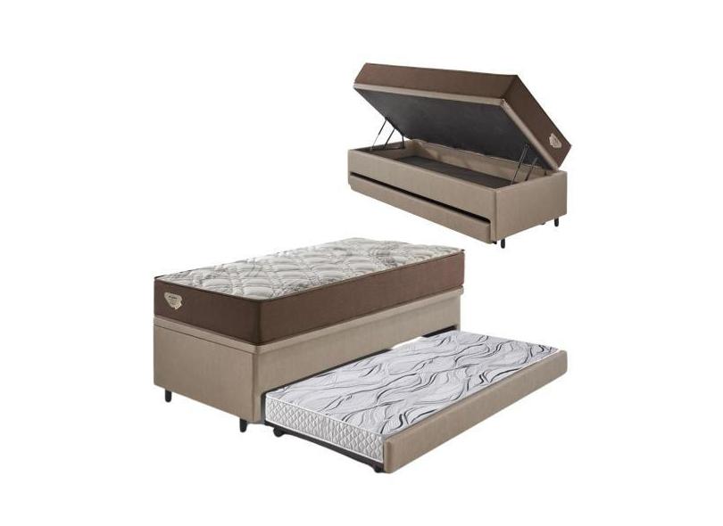 Bicama Box Baú Com Material Sintético Linho Bege 96X203 Com Colchão Re