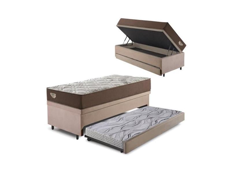 Bicama Box Baú Com Suede Bege 120X203 Com Colchão Relax Adorabile Mola