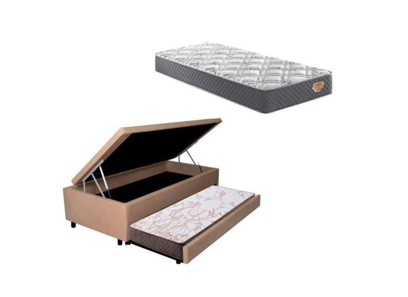 O menor preço encontrado no Brasil para Bicama Box Baú Solteiro 88x188 Cm em Courino com Colchão Adapto Molas Ensacadas Ecoflex Bege/Cinza atualmente é R$ 2.610,61.