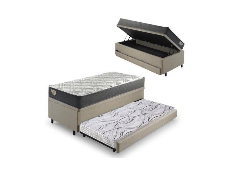 Bicama Box Baú Viúva 120X203 Linho Bege Com Colchão Adapto Molas Ensac