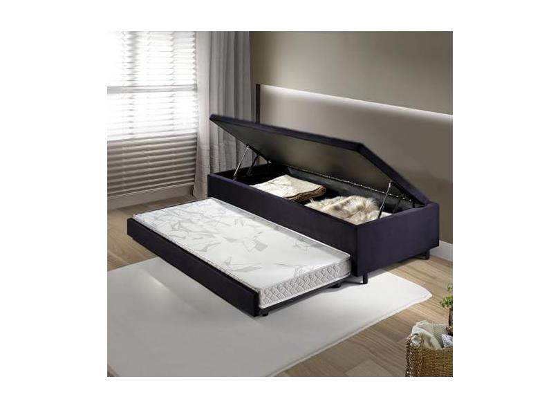 O menor preço encontrado no Brasil para Bicama Box Com Baú Solteirão 96x203 com Colchão Auxiliar Suede Preto atualmente é R$ 1.166,23.