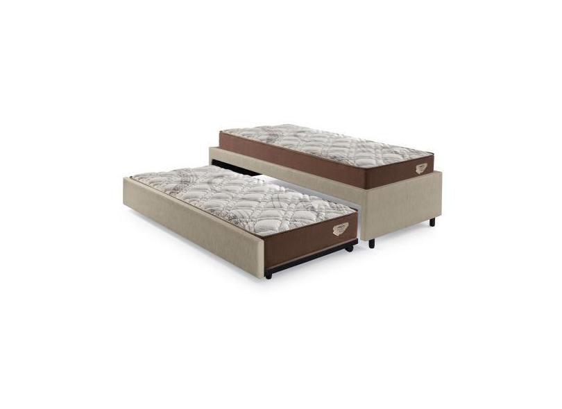 Bicama Box Solteiro 103x208 material sintético Linho Bege com 2 Colchõ