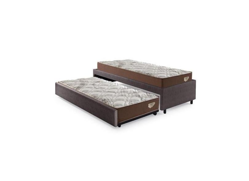 Bicama Box Solteiro 103x208 material sintético Linho Marrom com 2 Colc