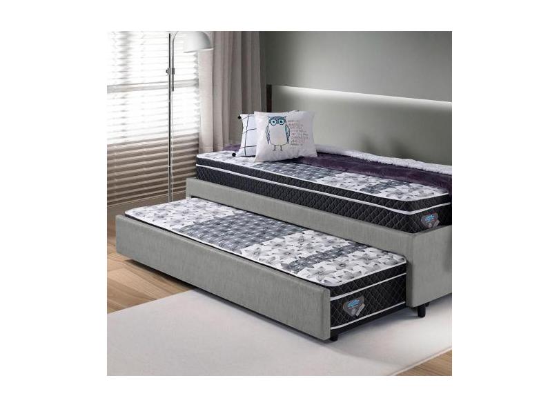 Bicama Box Solteiro 88x188 Cinza com Dois Colchões Gran Sleep Mola Ver