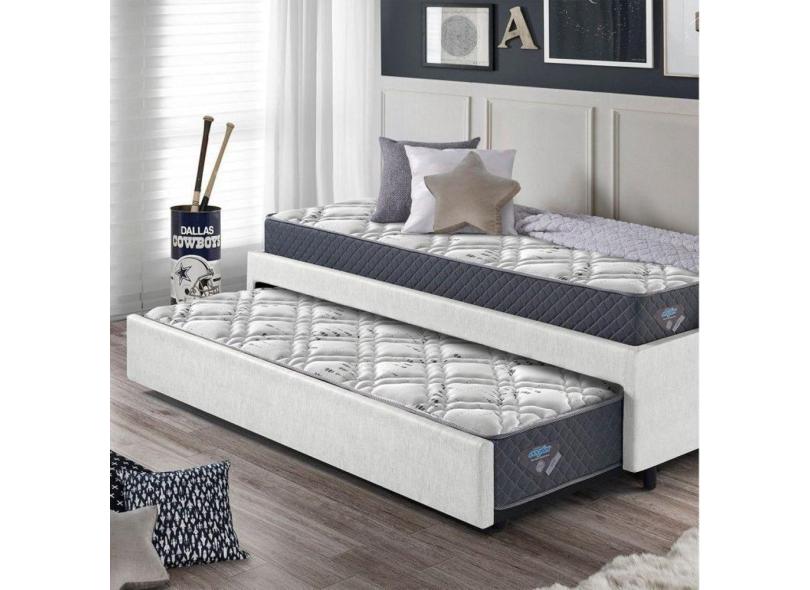 Bicama Box Solteiro 88x188 Courino com Dois Colchões Adapto Molas Ensacadas Ecoflex Branco/Cinza