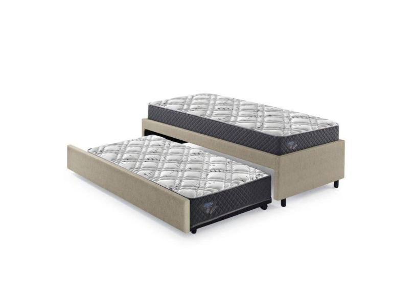 O menor preço encontrado no Brasil para Bicama Box Solteiro 88x188cm Courino com Dois Colchões Adapto Molas Ensacadas Ecoflex Bege/Cinza atualmente é R$ 2.738,83.