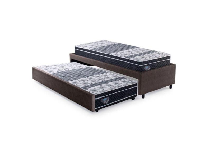 O menor preço encontrado no Brasil para Bicama Box Solteiro 88x188cm Courino com Dois Colchões Gran Sleep Molas Verticoil Ecoflex Marrom/Preto atualmente é R$ 2.519,95.